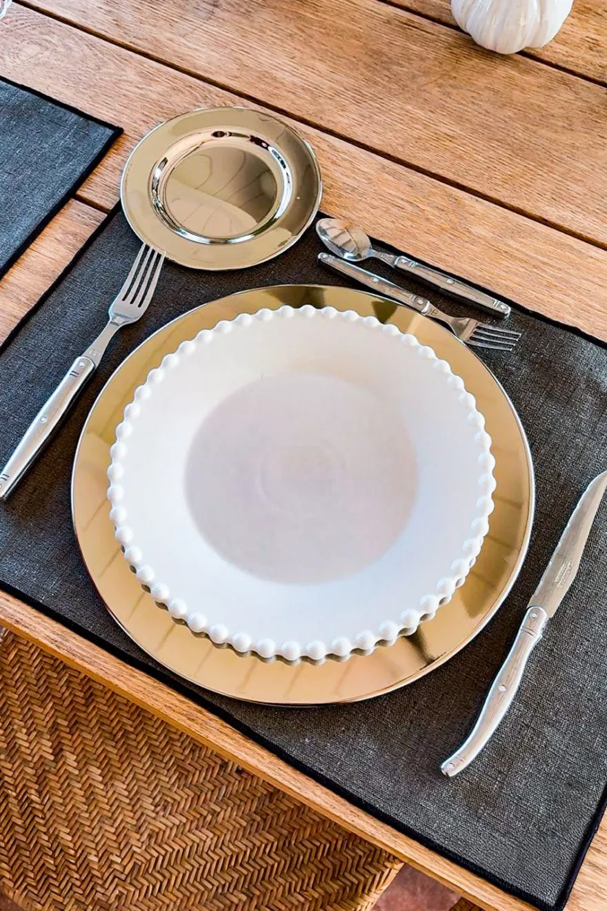 Este bajoplato de níquel con acabado plateado combina elegancia y funcionalidad en una sola pieza. Su diseño ofrece una presentación impecable que realza cualquier vajilla, desde lo clásico hasta lo contemporáneo.