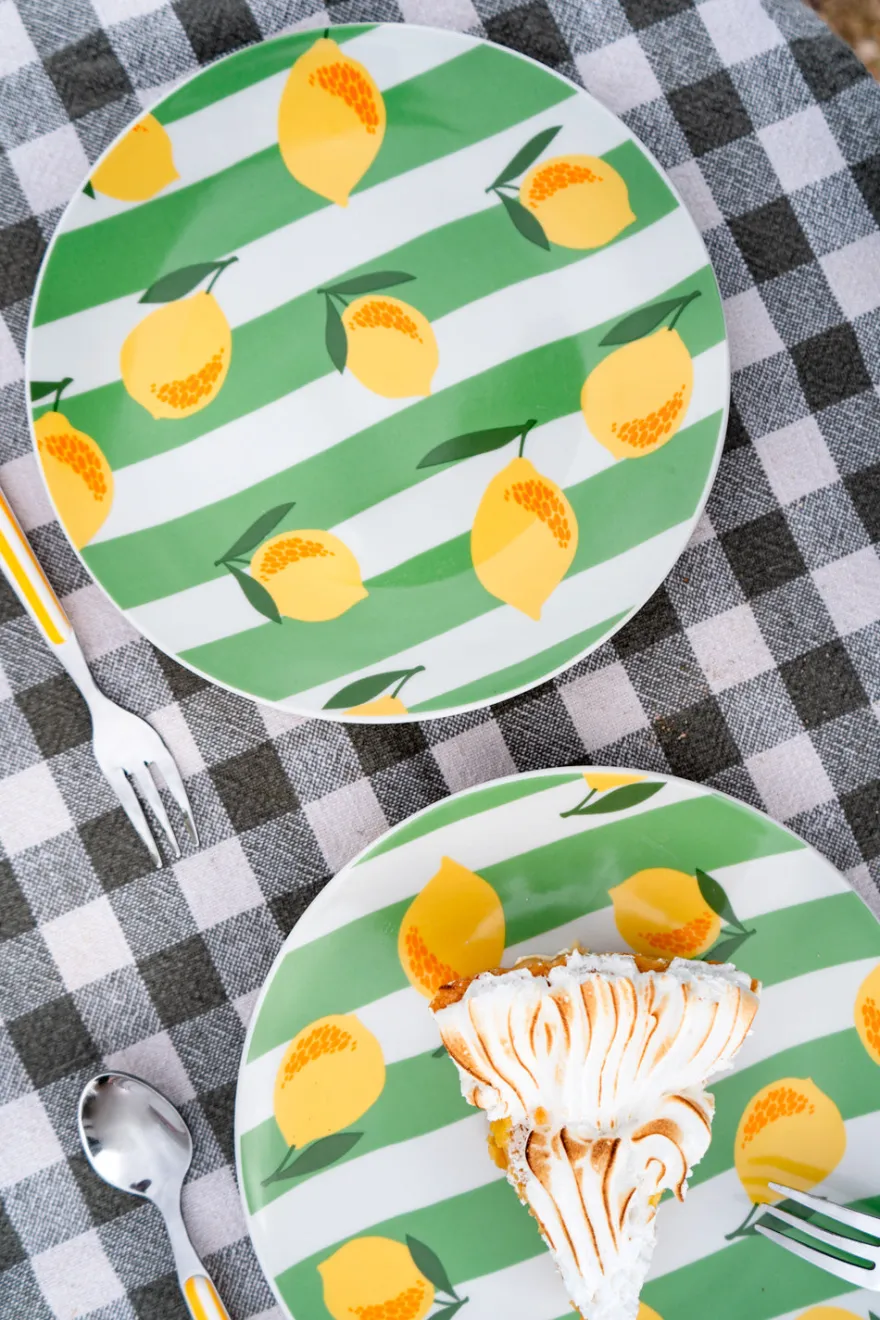 Plato de postre de porcelana fina de alta calidad con diseño de limones, ideal para complementar y dar un toque fresco, original y diferente a tus mesas en primavera y verano.