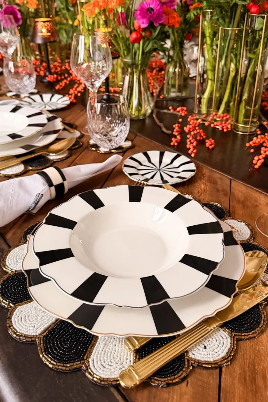 Nuevo plato hondo con diseño de rayas de New Bone China, reconocida por ser muy fina, ligera y resistente, de nuestra vajilla blanca y negra.