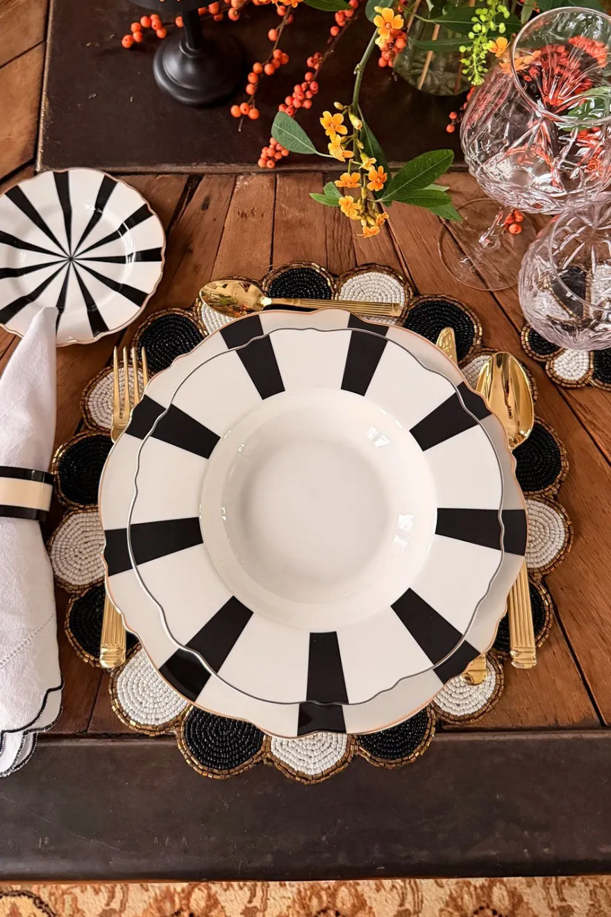 Sin duda, sorprenderás a tus invitados con este plato diseñado con nuestros emblemáticos colores “blanco y negro” y con un delicado filo dorado decorando, que le dará a tu mesa el toque elegante que estabas buscando.