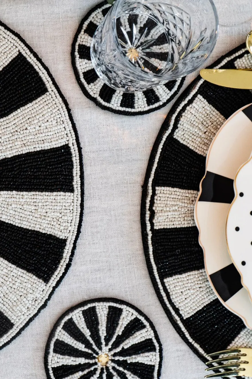 Este posavasos destaca por su exquisito bordado a mano con cuentas de bolitas con diseño blanco y negro, que le da un toque de lujo y sofisticación a cualquier mesa. Las bolitas están cuidadosamente cosidas en patrones delicados, creando texturas y relieves que combinan elegancia con un diseño artístico único. Perfecto para cenas especiales o para elevar la decoración diaria de tu mesa.