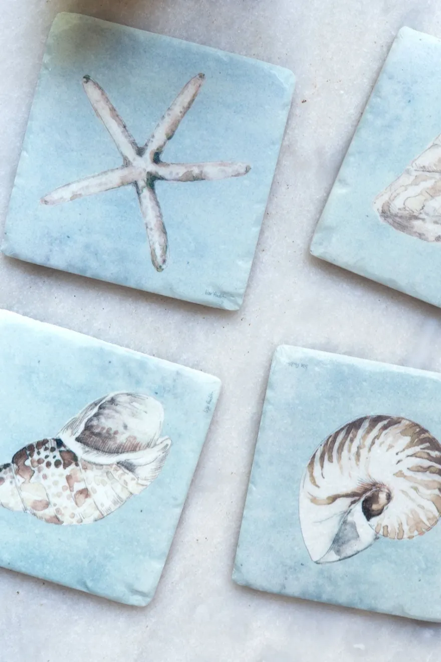 Cristina Oria Posavasos Y Servilleteros^Set 4 Posavasos De Mármol Diseño Conchas