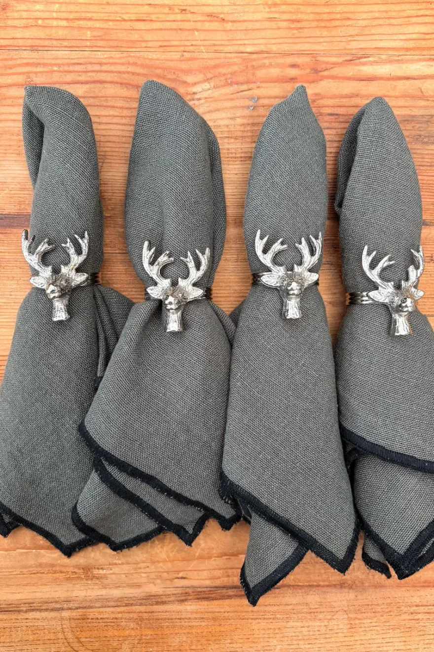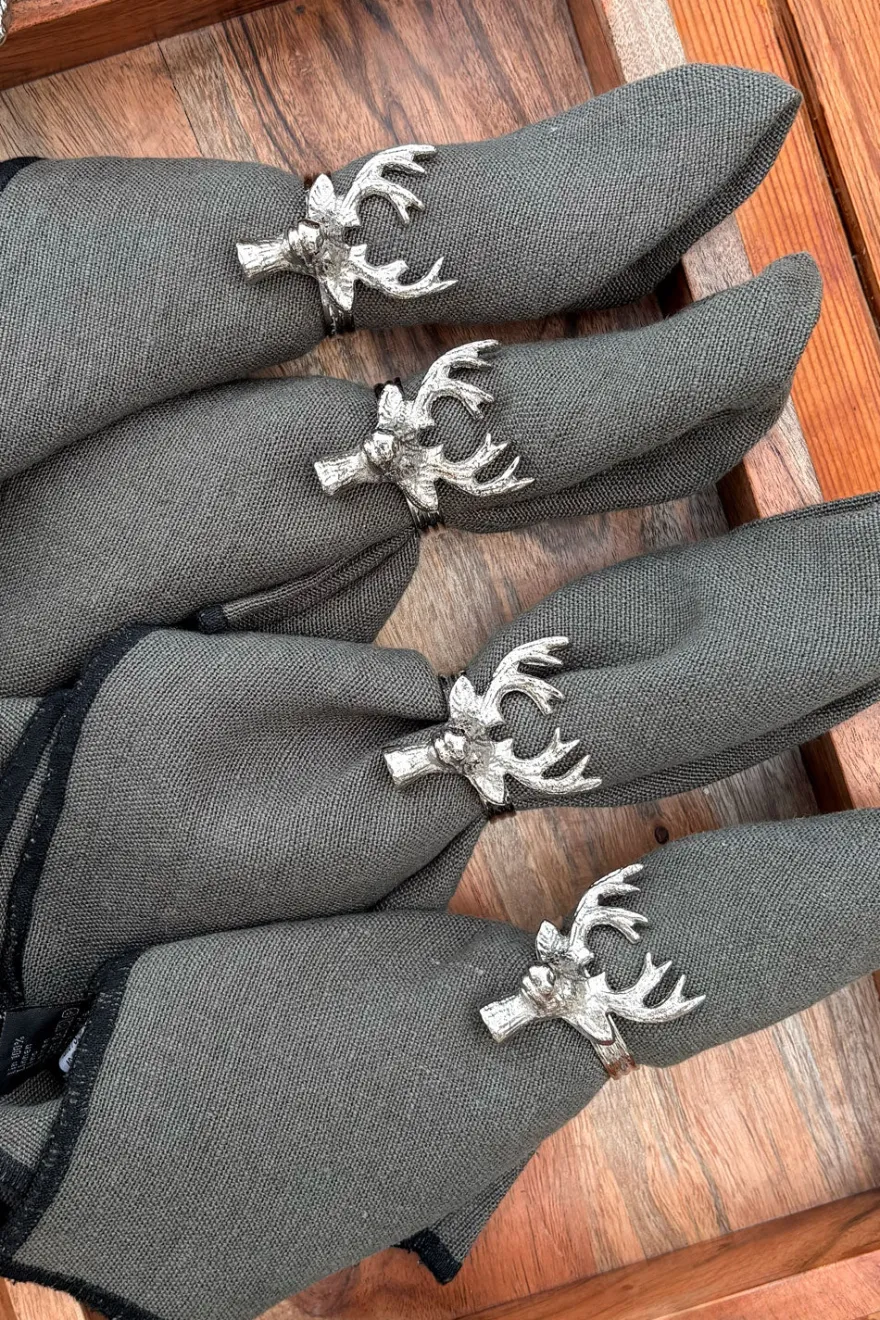 Este elegante set de cuatro servilleteros es el complemento perfecto para cualquier mesa. Cuentan con la figura de un ciervo, lo que los convierte en un regalo único.
