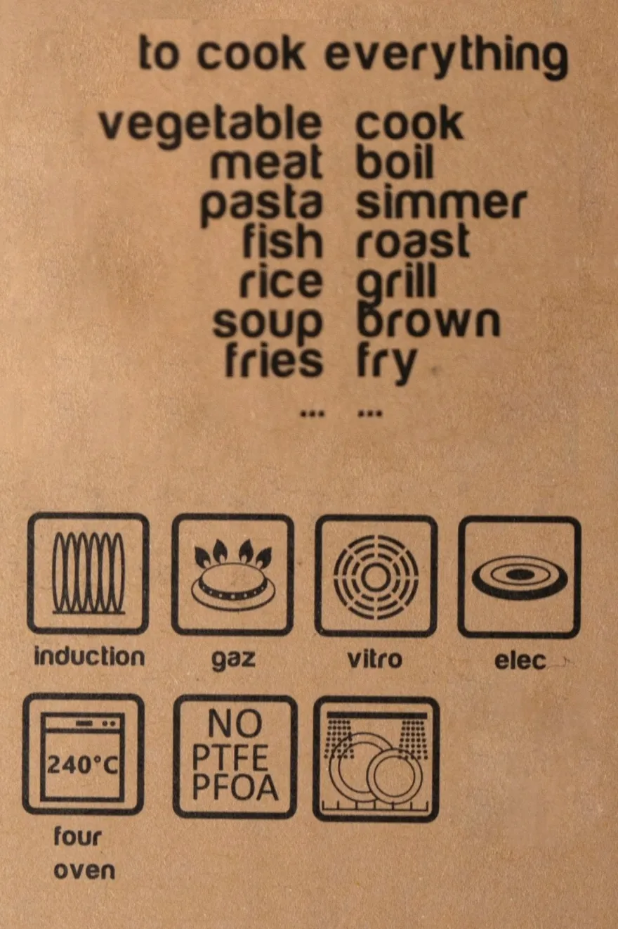 Cacerola antiadherente de 20 cm con revestimiento mineral sin PTFE/ PFOA, y con mango de madera.