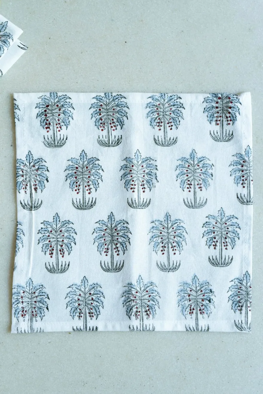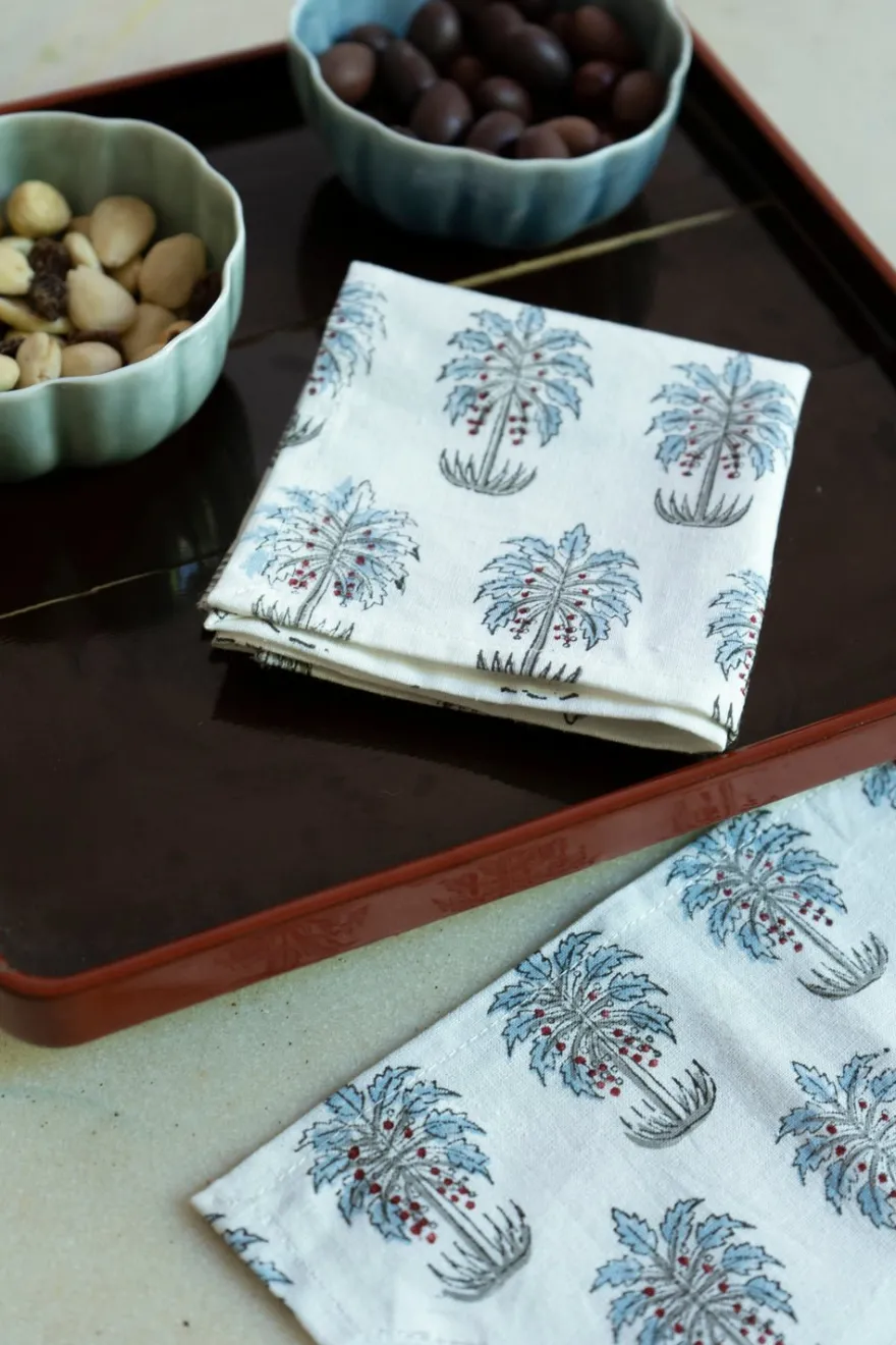Servilleta cocktail 100% algodón con diseño Indira, cuyo significado es “Belleza”, pintada a mano en la India.