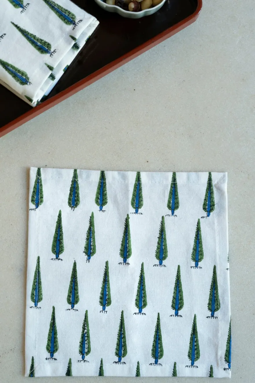 Servilleta cocktail 100% algodón con diseño Saniya, cuyo significado es “Radiante”, pintada a mano en la India.