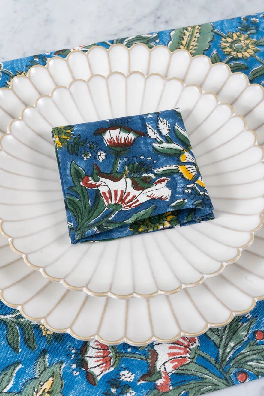 Servilleta cocktail 100% algodón con diseño Warsha, cuyo significado es “Lluvia”, pintada a mano en la India.