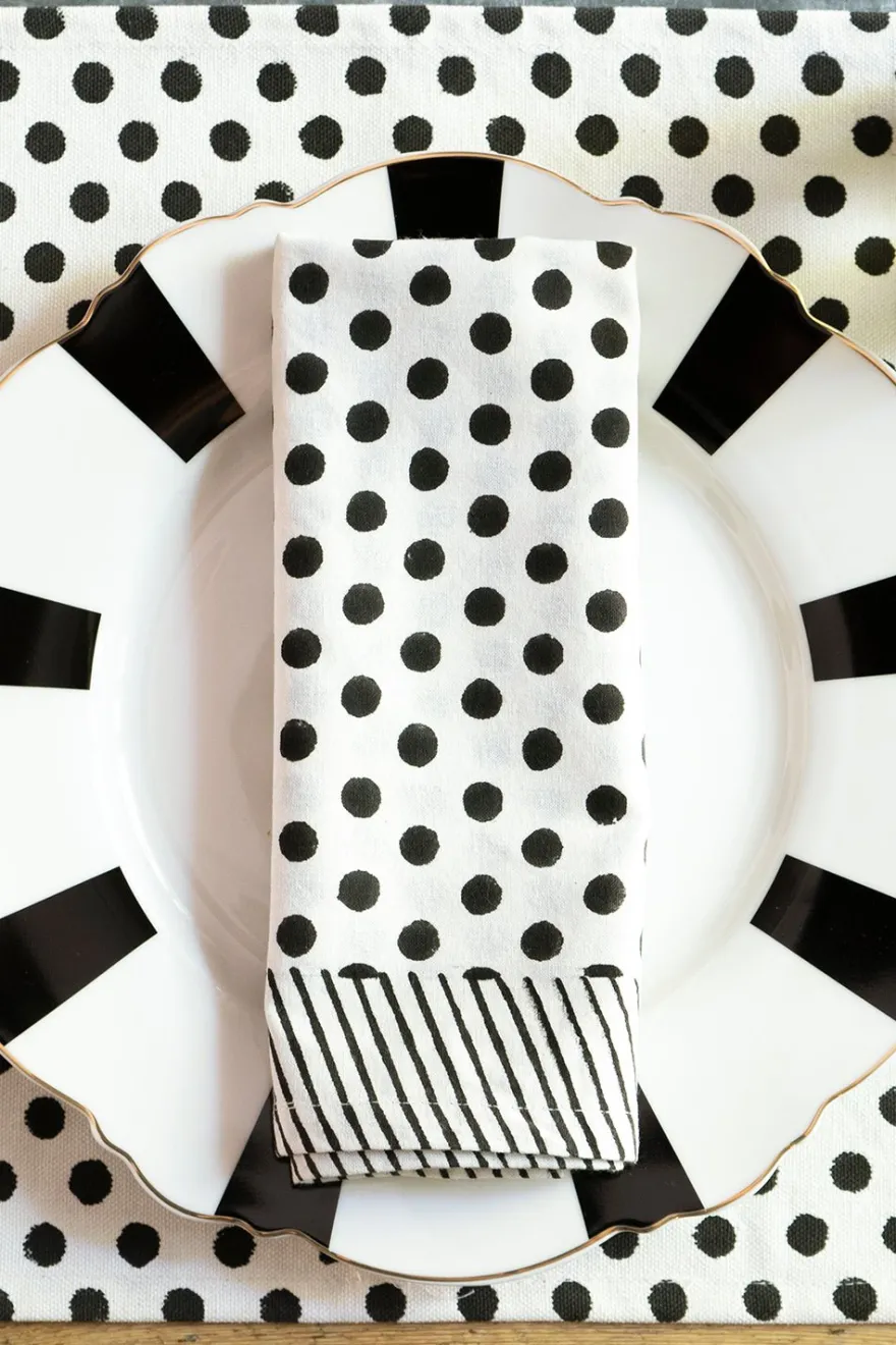 Servilleta 100% algodón con diseño Ganesh, con los colores blanco y negro CO, pintada a mano en la India.
