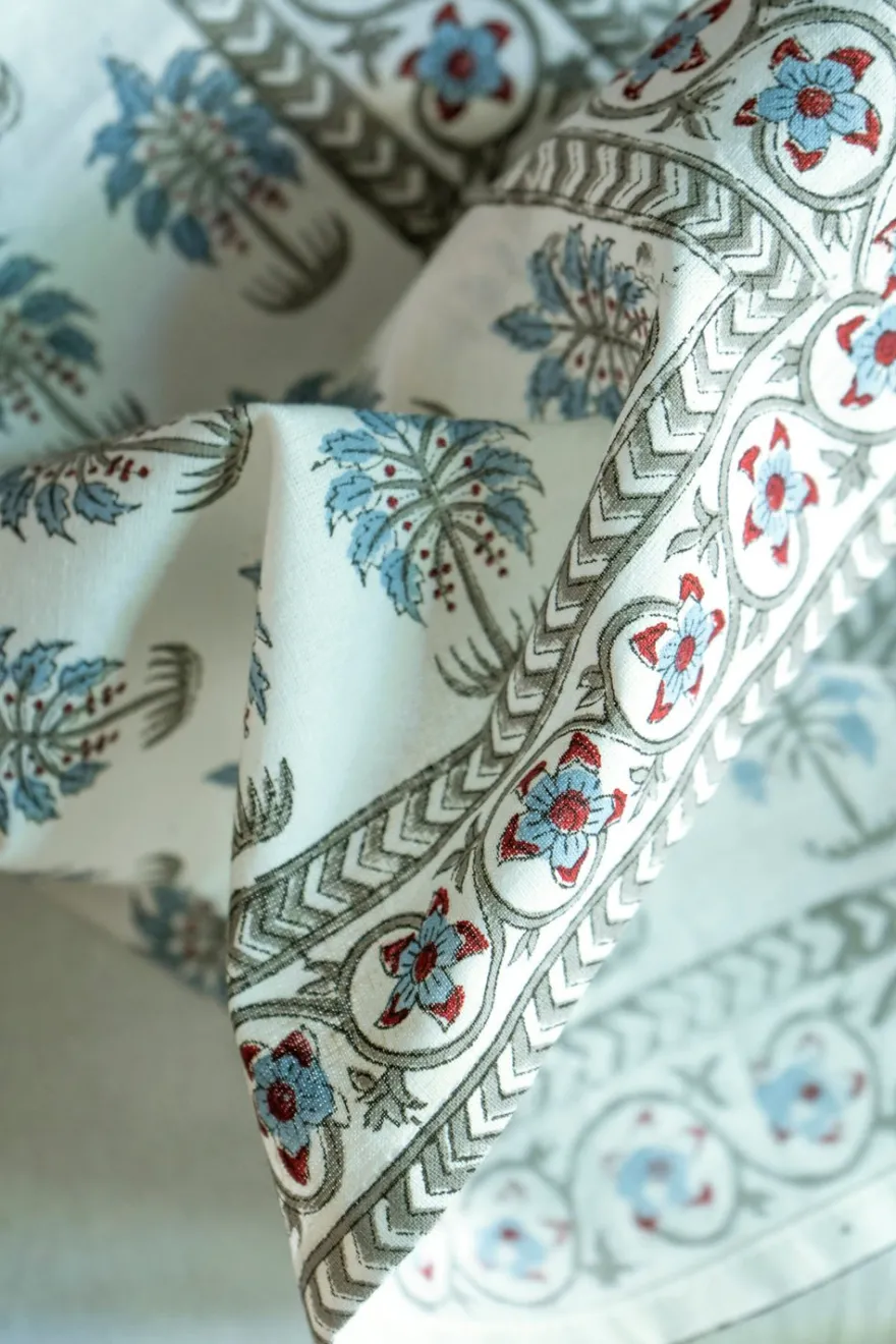 Servilleta 100% algodón con diseño Indira, cuyo significado es “Belleza”, pintada a mano en la India.