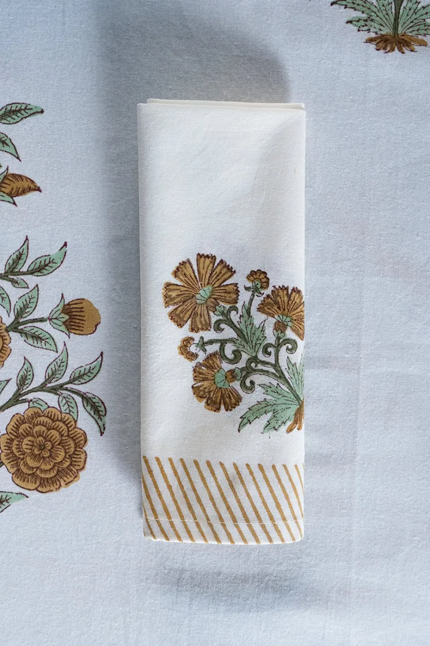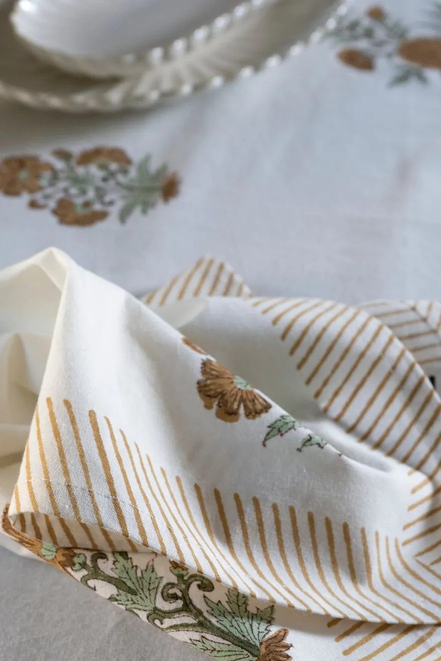 Servilleta 100% algodón con diseño Kalinda, cuyo significado es “Sol”, pintada a mano en la India.