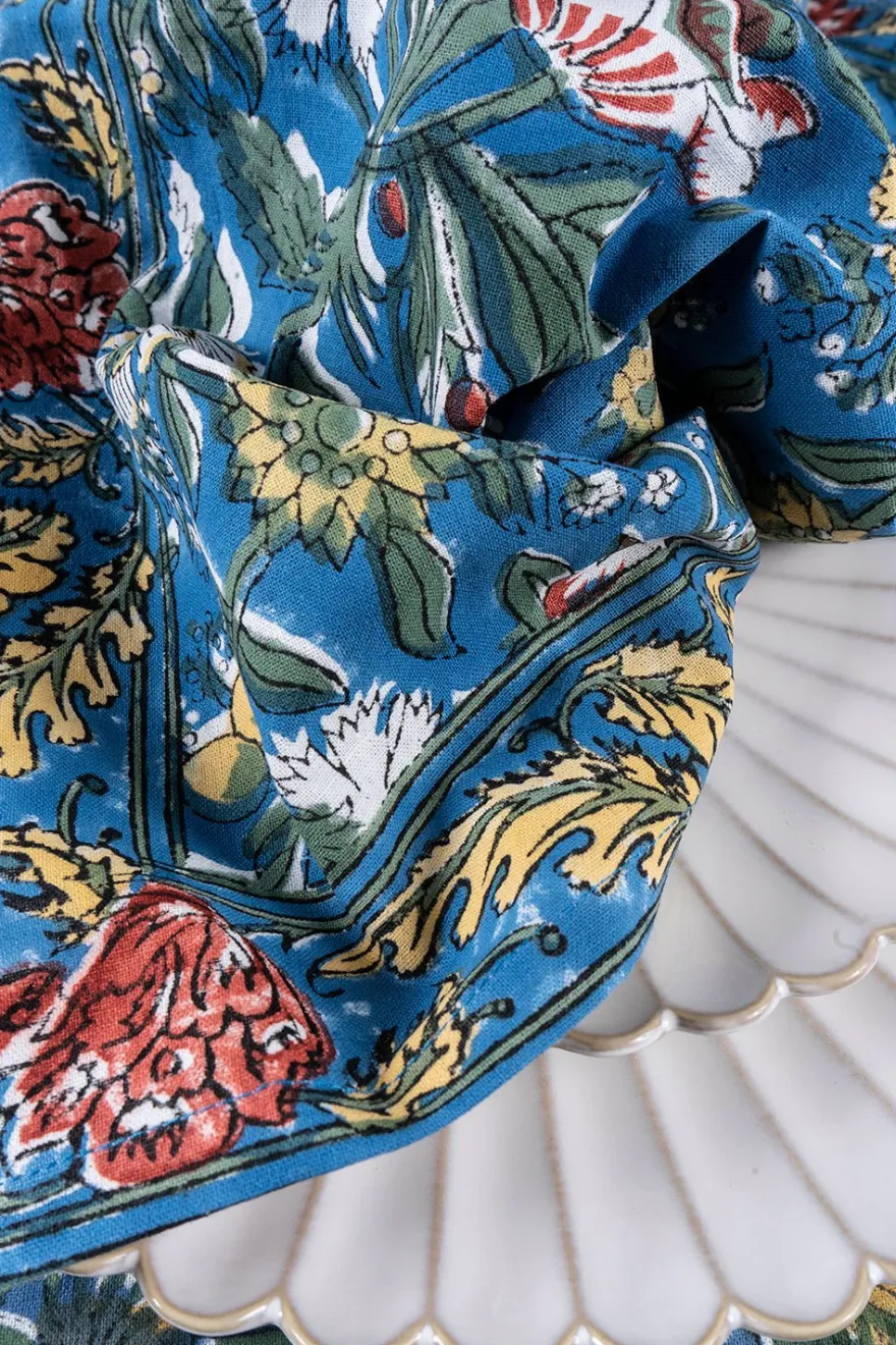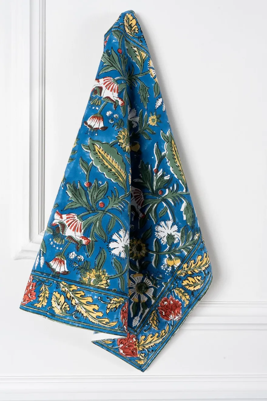 Servilleta 100% algodón con diseño Warsha, cuyo significado es “Lluvia”, pintada a mano en la India.