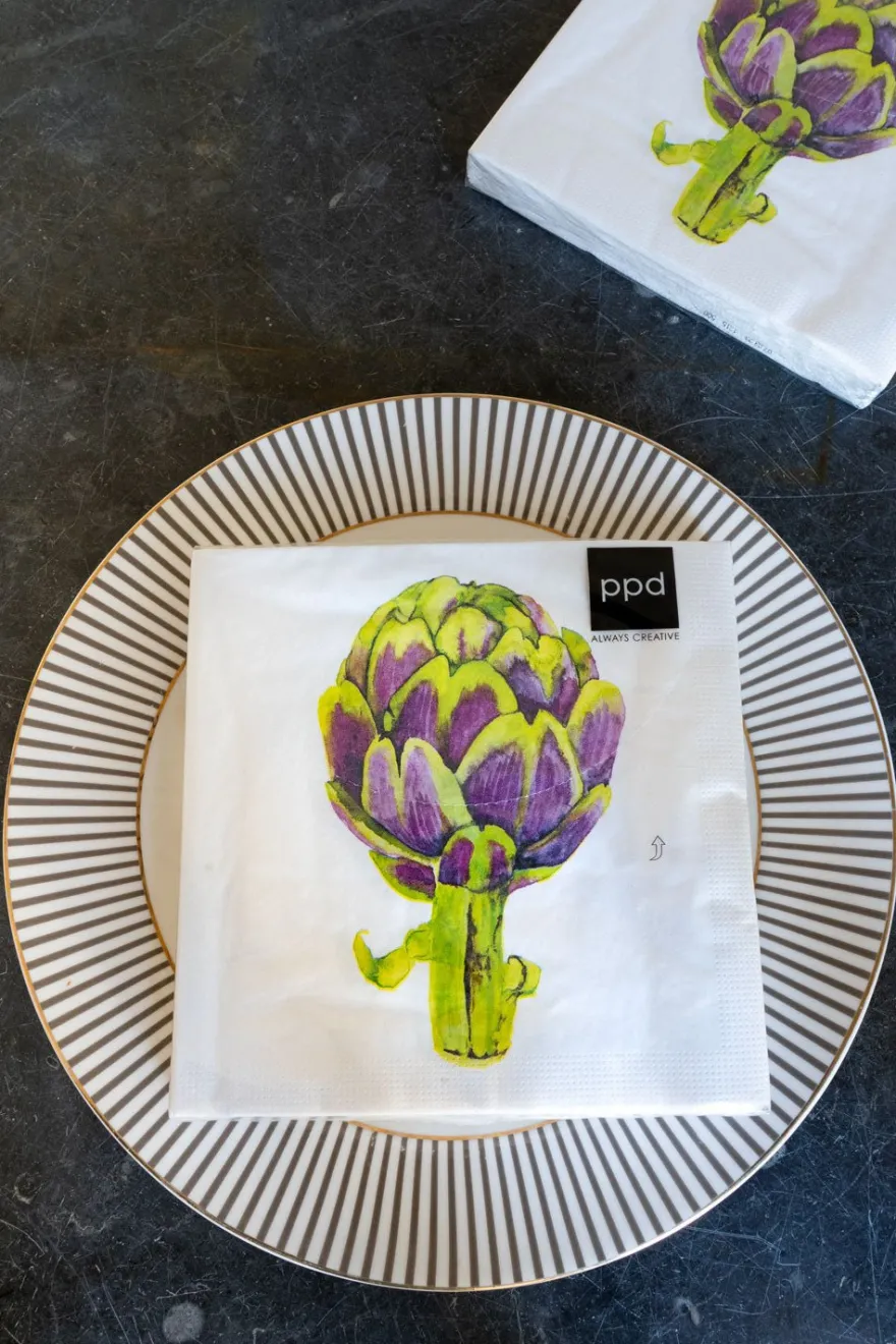Servilletas de papel con ilustración de alcachofa, ideales para complementar y dar color a tus mesas.