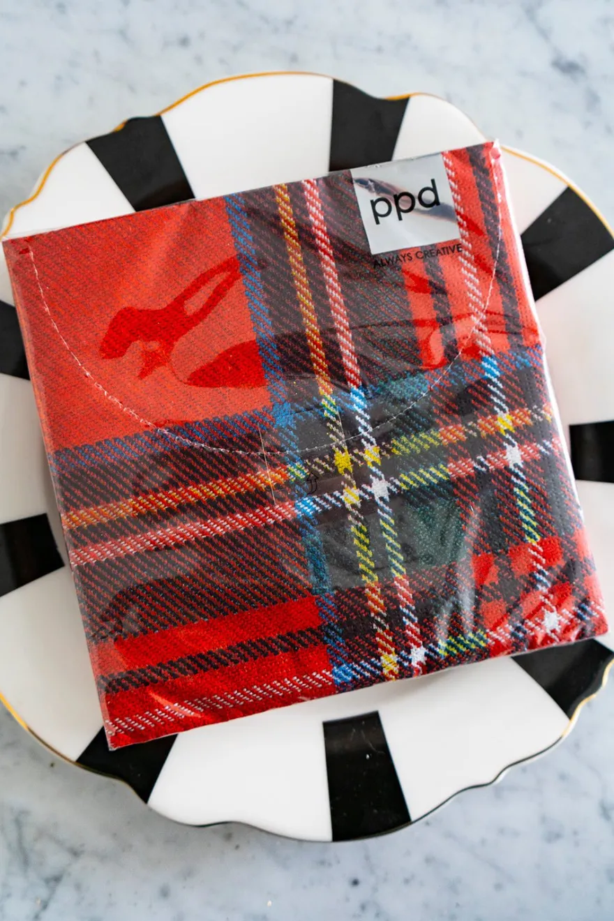 Servilletas de papel con diseño de cuadros escoceses, ideales y originales para complementar tu mesa en cenas y almuerzos estas navidades.