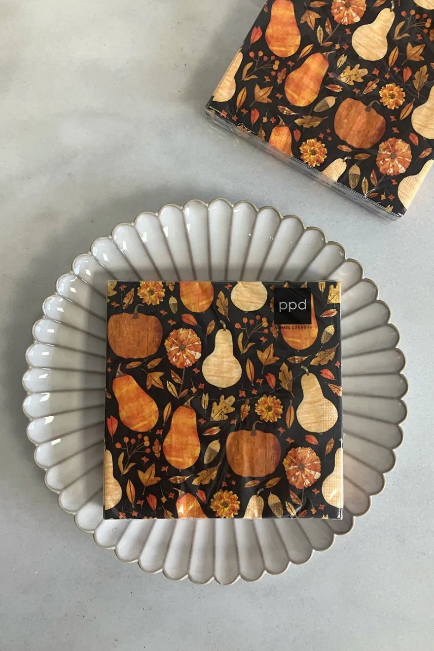 Servilletas de papel con ilustración de calabazas, originales e ideales para complementar tu mesa en Halloween o en otoño.