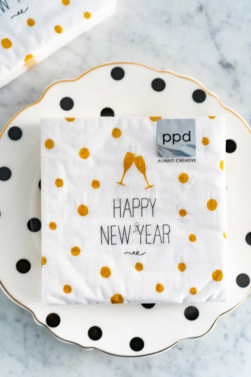 Servilletas de papel con diseño especial «Happy New Year», ideales para complementar tu mesa en cenas y almuerzos este fin de año.