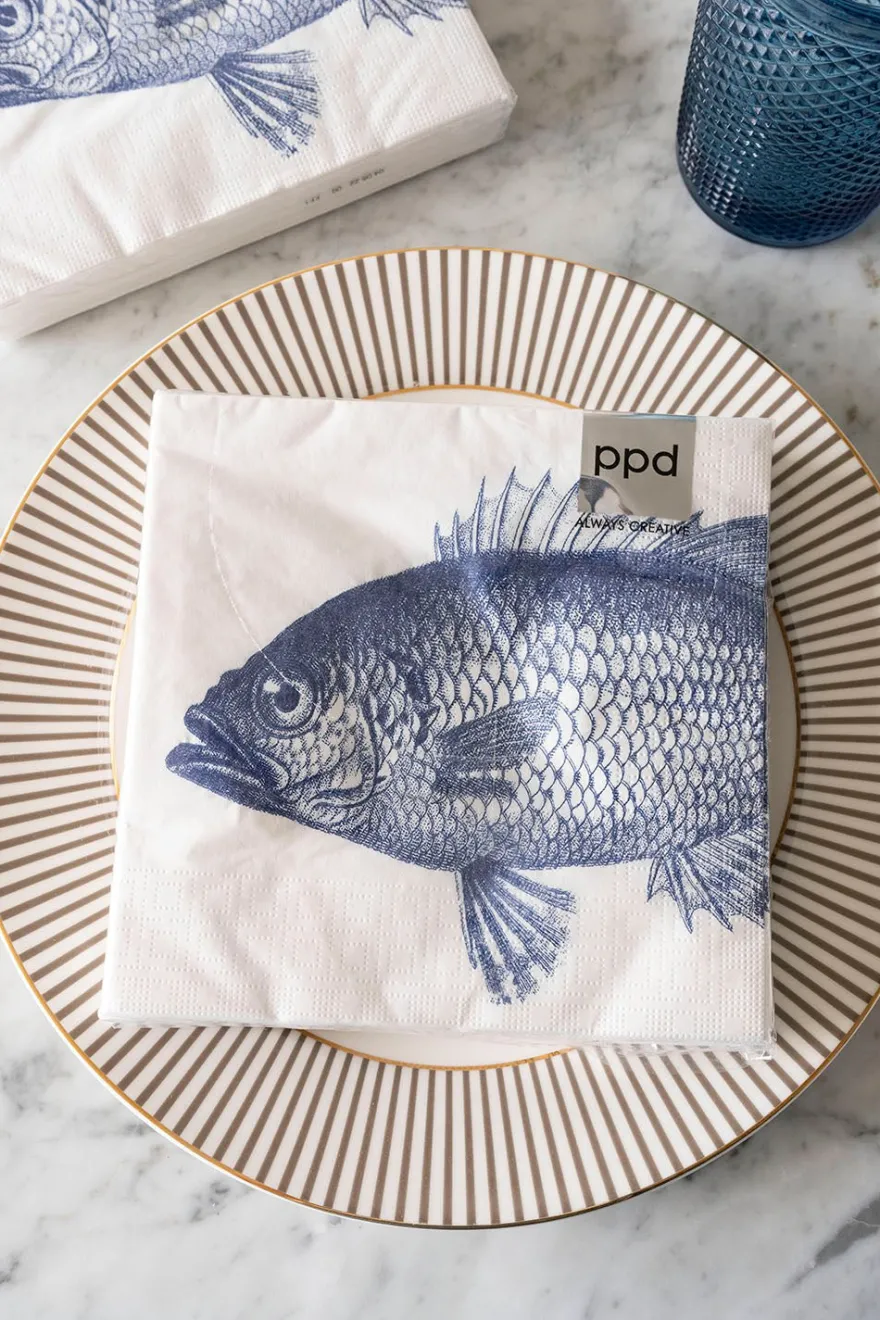 Servilletas de papel con ilustración de pez, ideales para complementar tu mesa en verano o para llevarlas al barco.