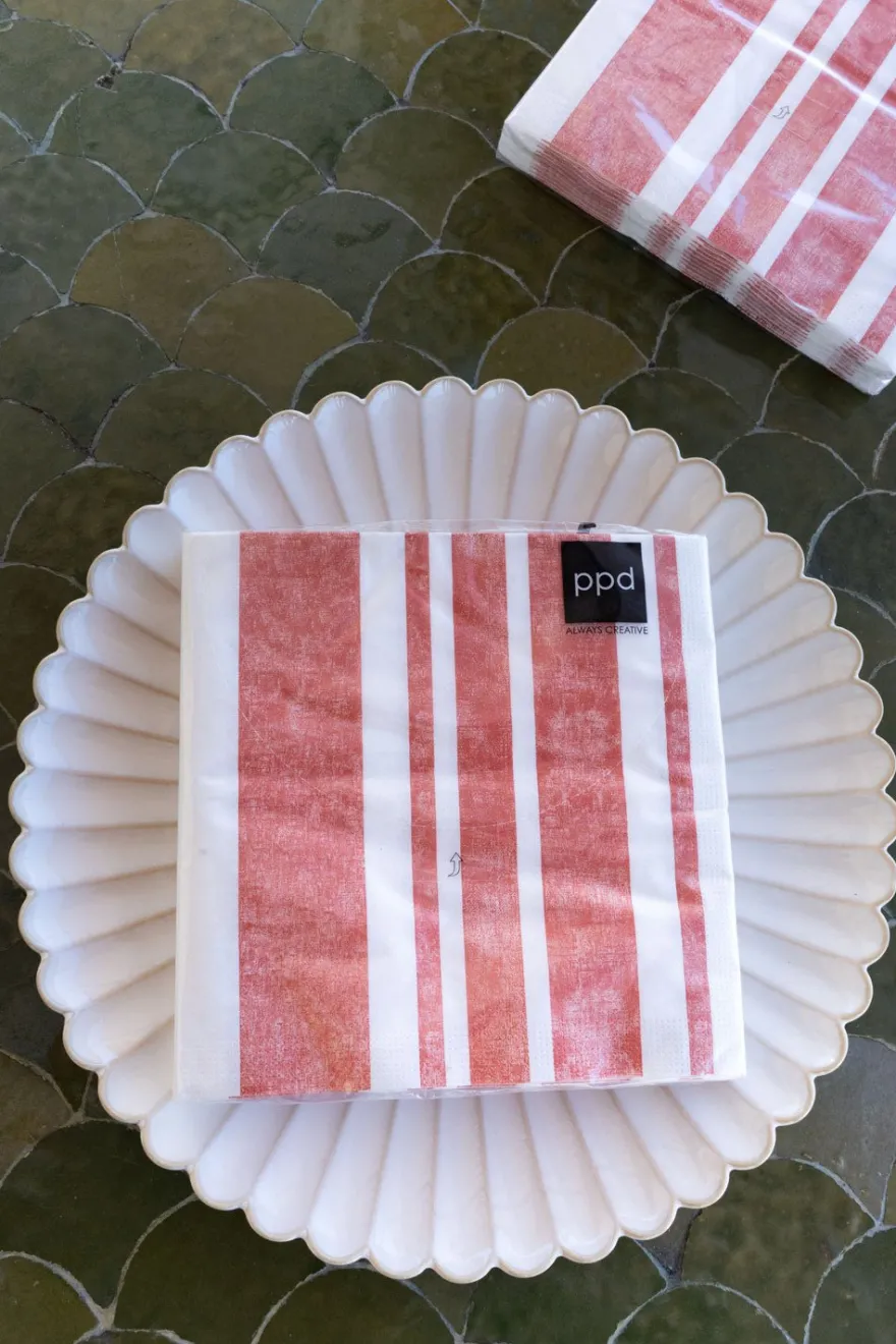Servilletas de papel con ilustración de rayas rojas, ideales para complementar y dar color a tus mesas.
