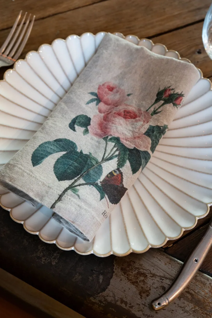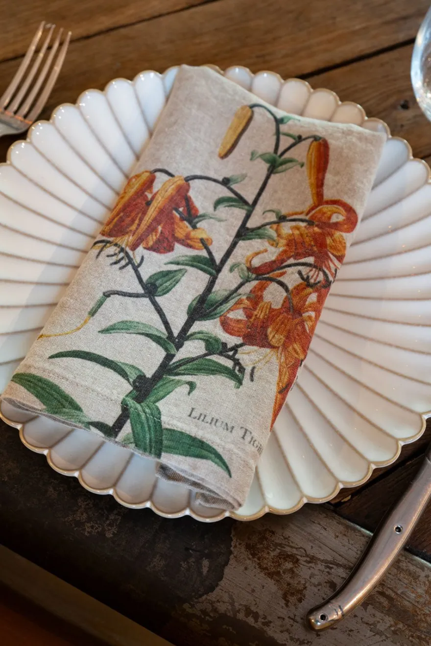 Seis servilletas de lino con distintas ilustraciones de flores de diferentes tonalidades elegantes, atemporales y muy duraderas, ya que están fabricadas con fibras textiles de primera calidad.