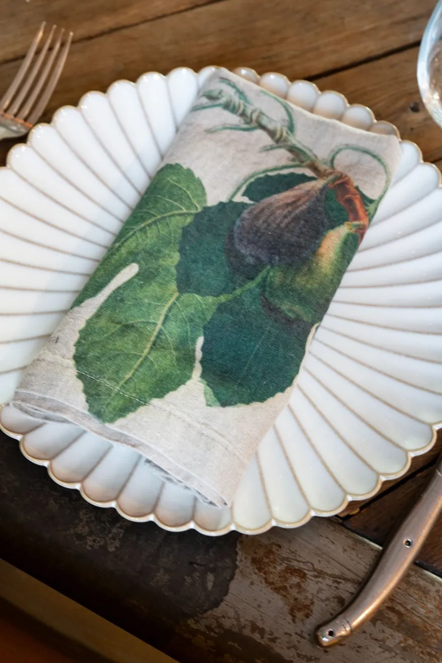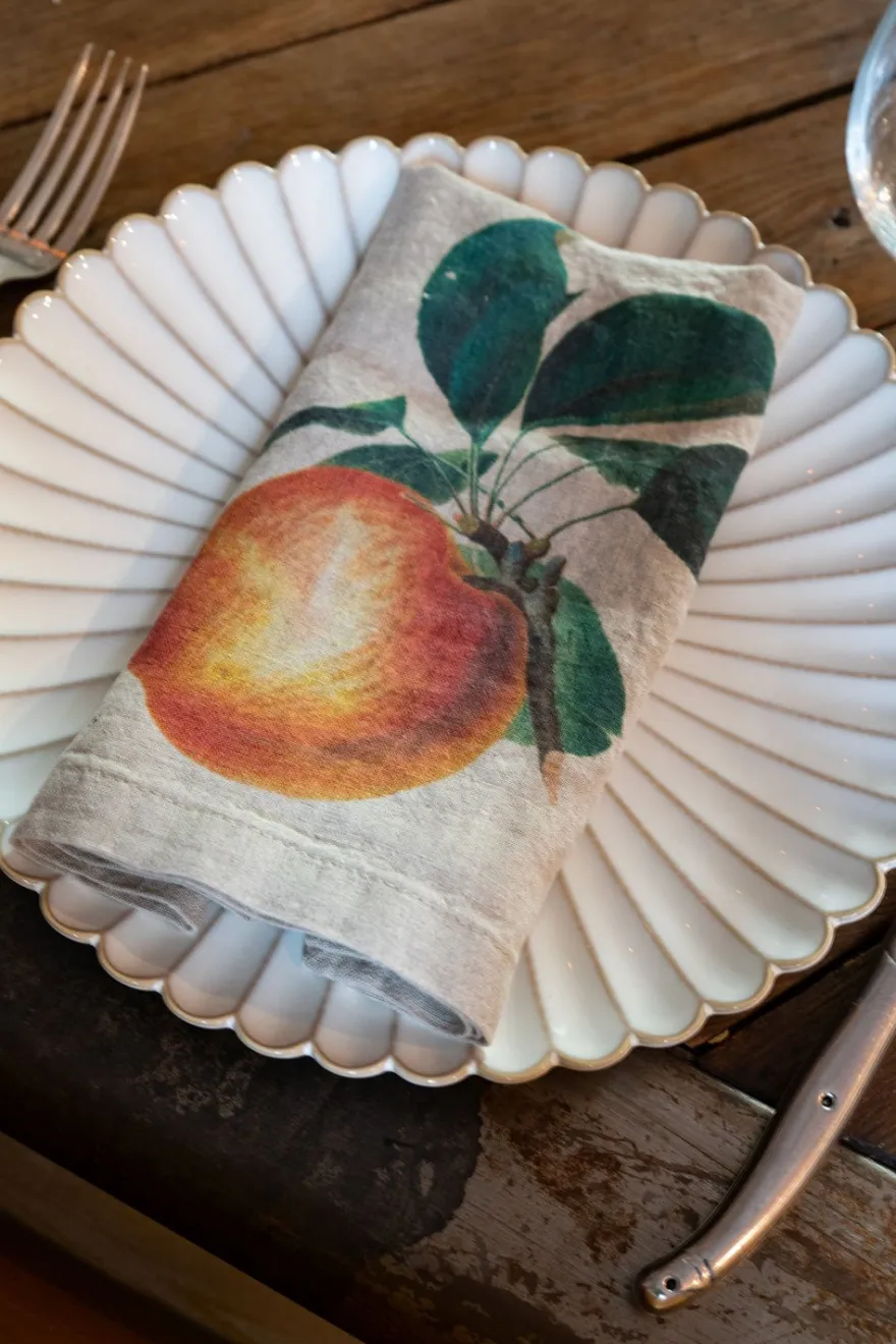 Seis servilletas de lino con distintas ilustraciones de frutas; elegantes, atemporales y muy duraderas, ya que están fabricadas con fibras textiles de primera calidad.