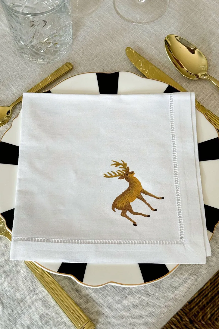 Este set de seis servilletas de 100% algodón bordadas a mano es perfecto para añadir un toque de elegancia natural a tu mesa. Cada servilleta presenta una delicada ilustración de un animal de caza diferente, cuidadosamente bordado a mano con hilos de distintos colores.