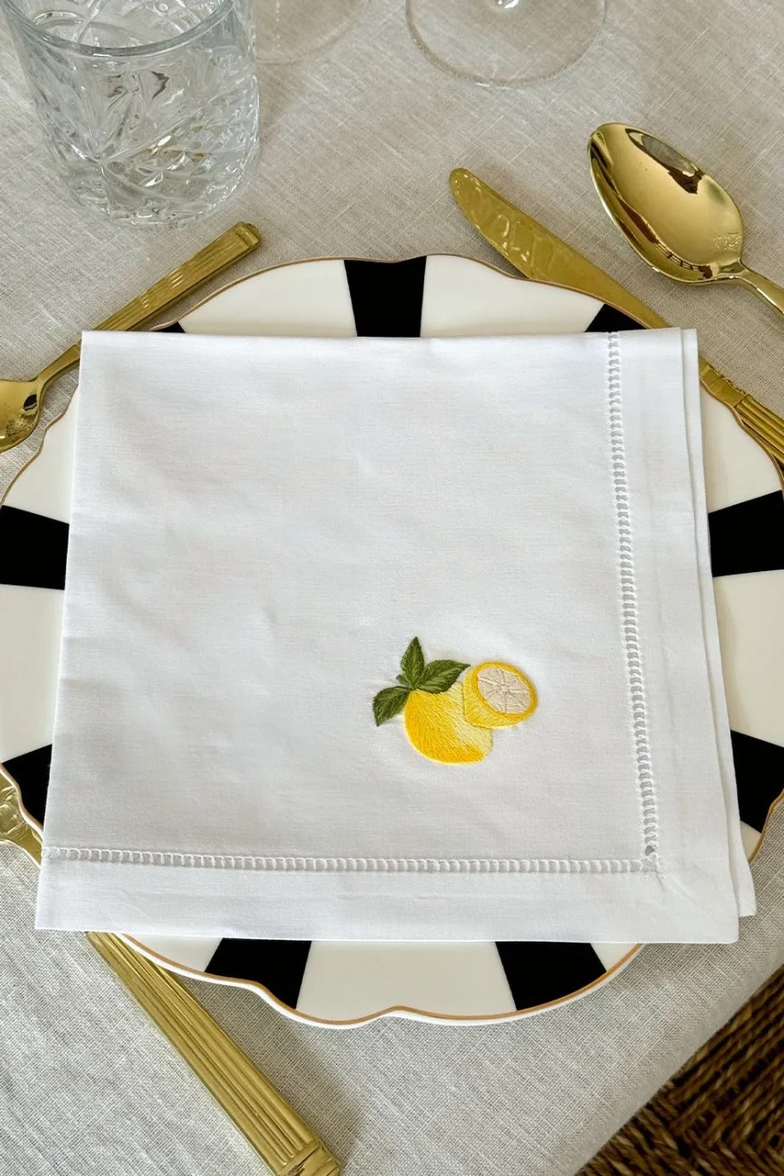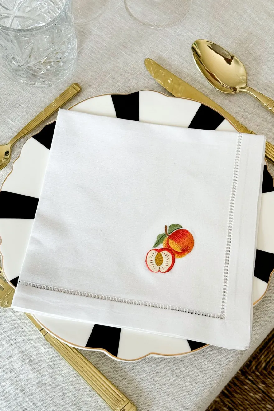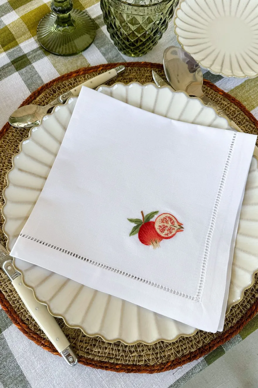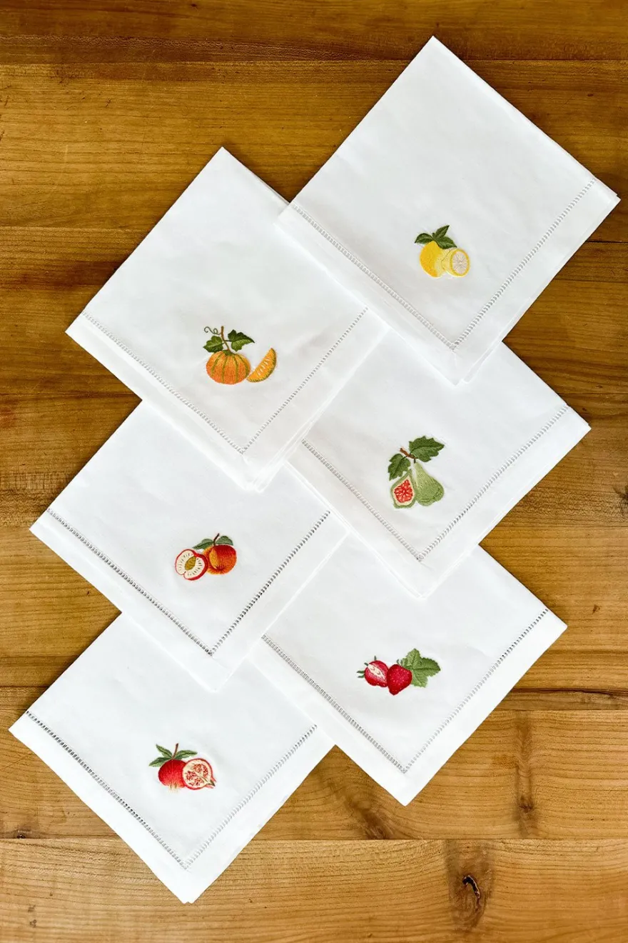Este set de seis servilletas de 100% algodón bordadas a mano es perfecto para añadir un toque de elegancia natural a tu mesa. Cada servilleta presenta una delicada ilustración de una fruta diferente, cuidadosamente bordada a mano con hilos de distintos colores.