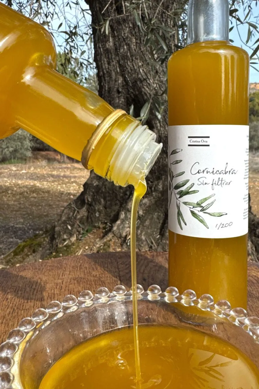 Descubre esta edición exclusiva de tan solo 200 botellas de aceite de oliva virgen extra de variedad cornicabra sin filtrar, un aceite único elaborado en nuestra finca de Morata de Tajuña.