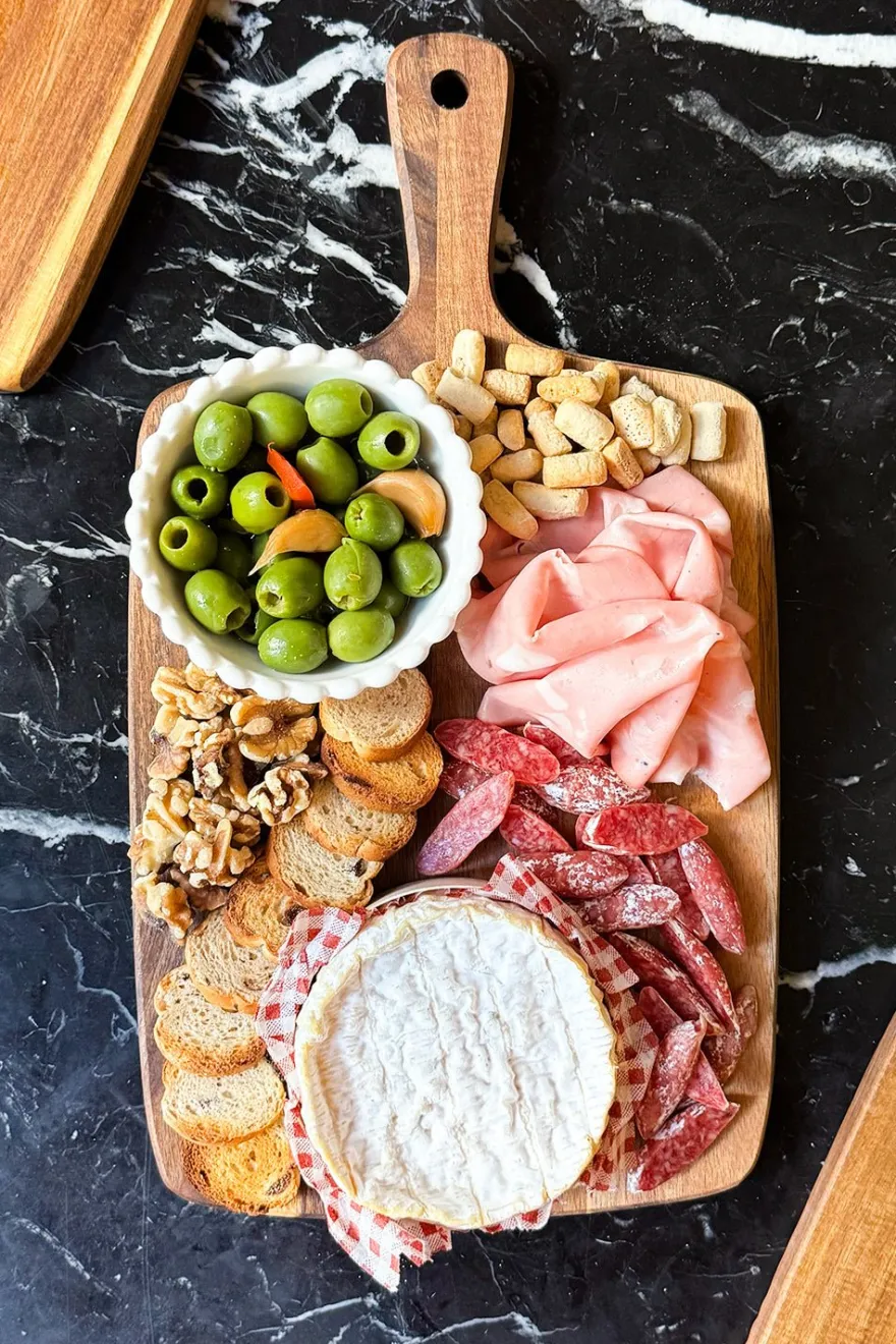 Su diseño incorpora un práctico mango que facilita el agarre y la manipulación, ideal para servir aperitivos, cortar alimentos o usar como bandeja de presentación.
