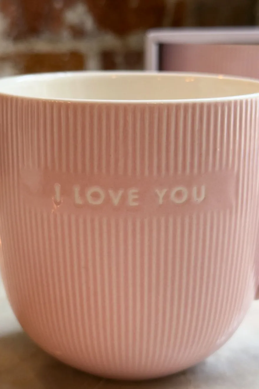 Una taza llena de amor para decirlo sin palabras. Con un delicado grabado “I love you” y un elegante diseño en tono rosa, cuenta con una textura de rayas en relieve que le aporta un acabado moderno y distintivo, además de un asa en un tono rosa más oscuro que crea un bonito contraste con el resto de la taza. Perfecta para acompañar desayunos, cafés o pequeños momentos del día.