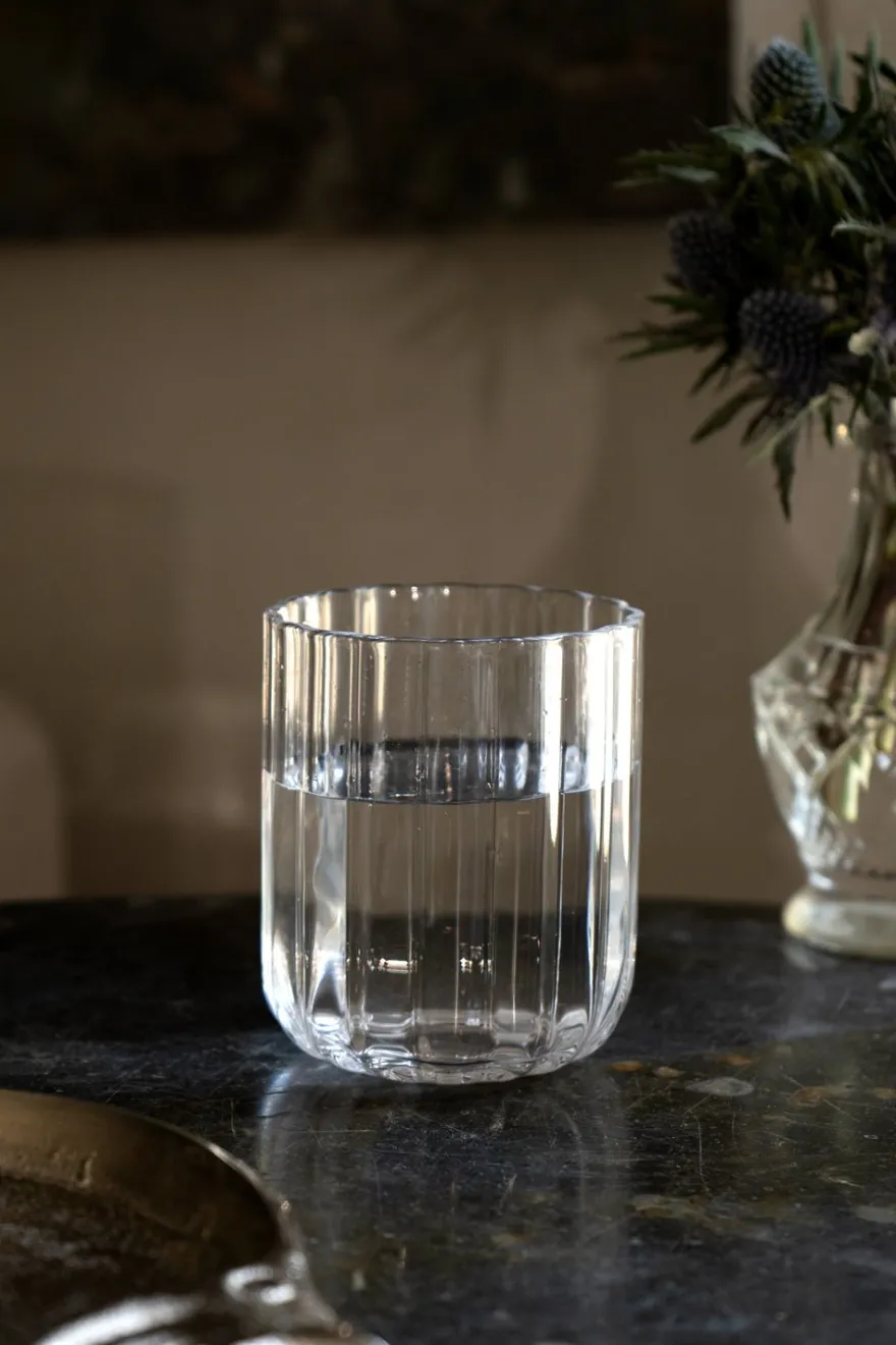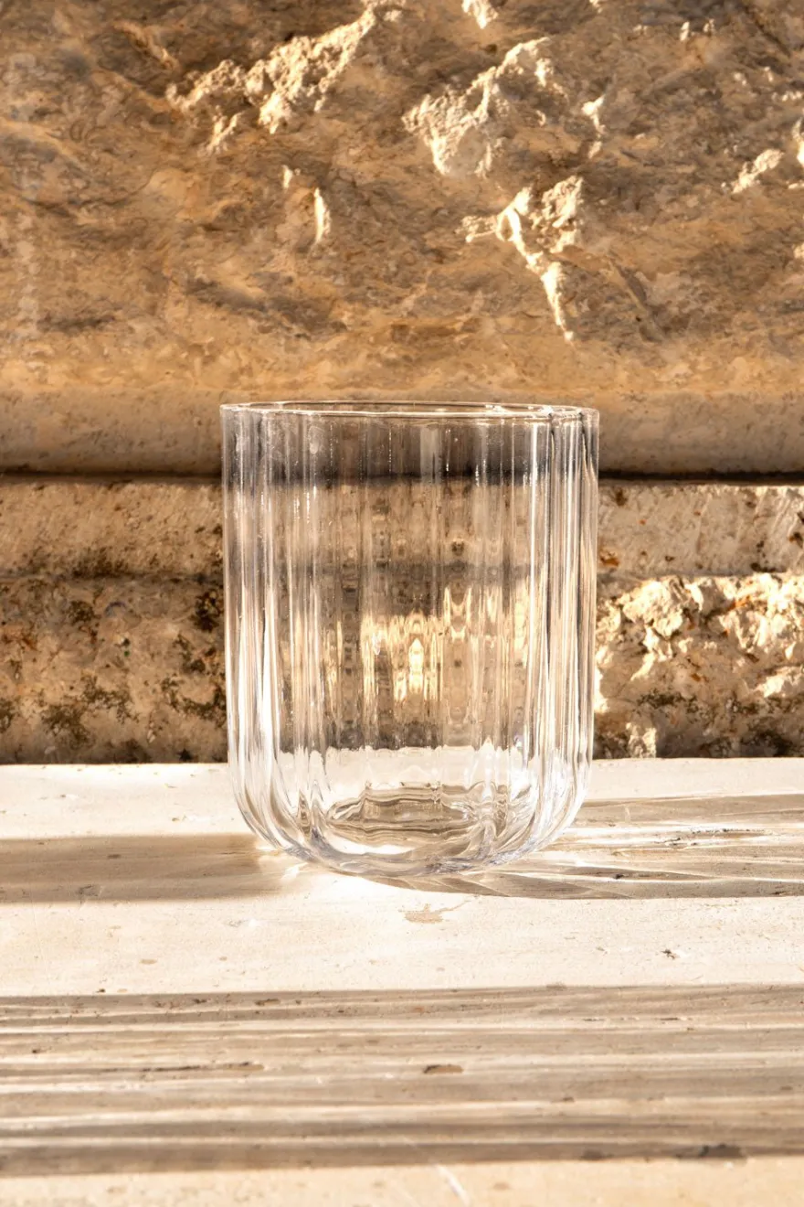 Vaso pequeño de nuestra cristalería con diseño de ondas.