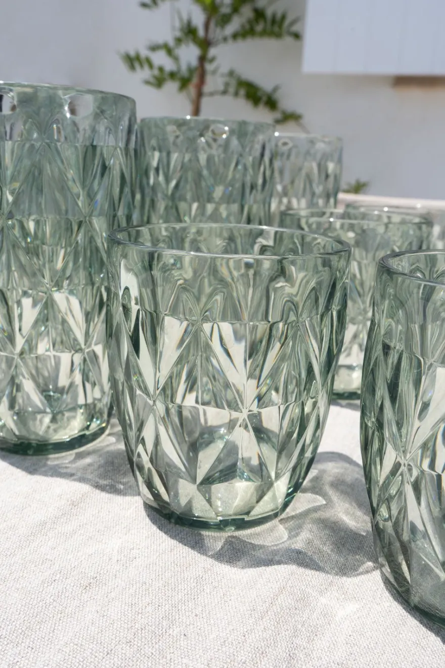 Vaso verde acrílico con diseño de rombos, ideal para complementar y dar un toque fresco, original y diferente a tus mesas este verano.