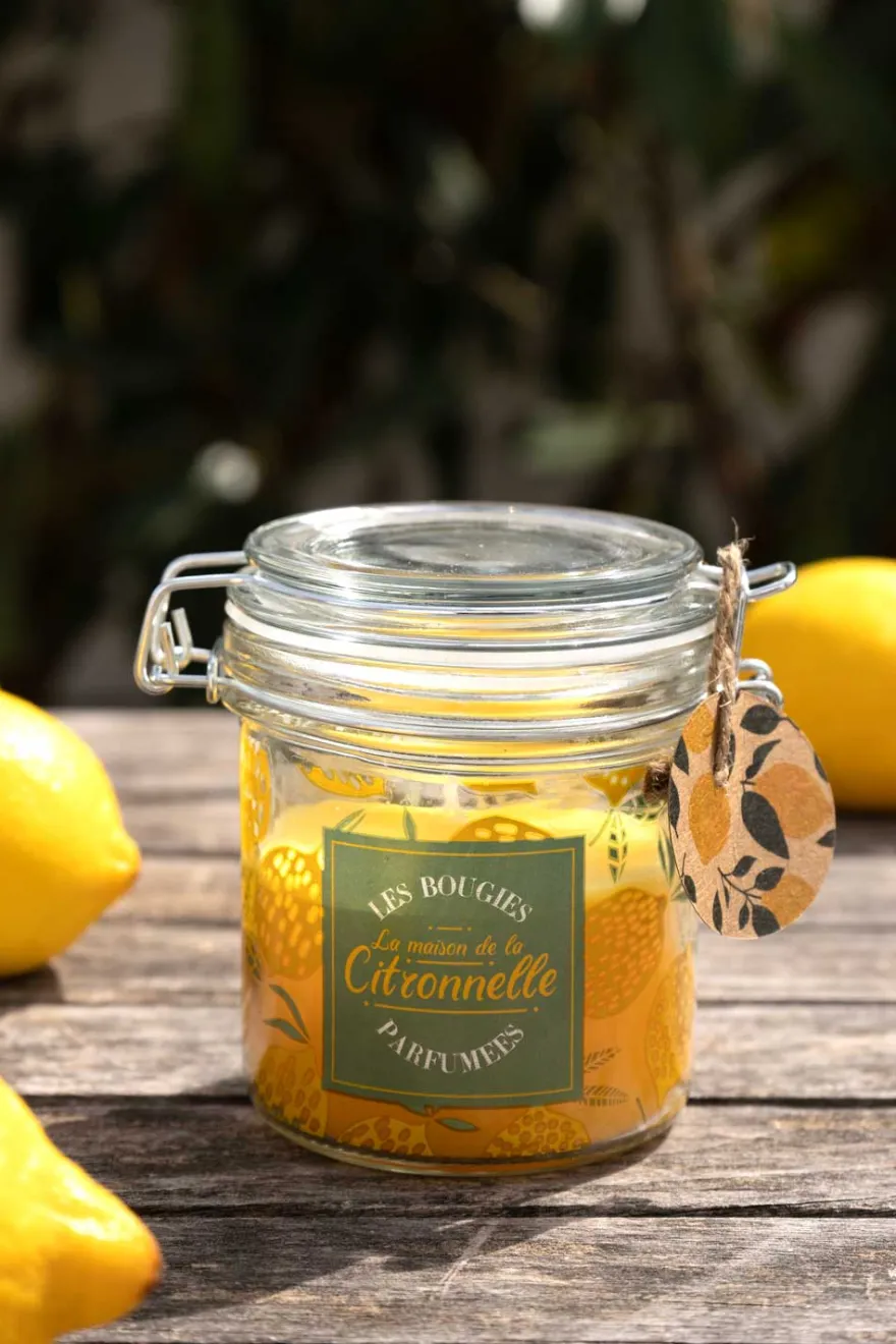 Vela de parafina en vaso de vidrio con tapa, cierre hermético y con aroma a citronela.