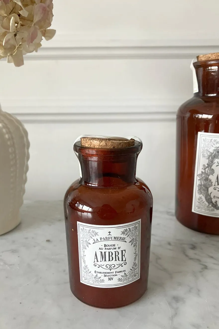 Velas perfumadas en frasco de vidrio y tapón de corcho.